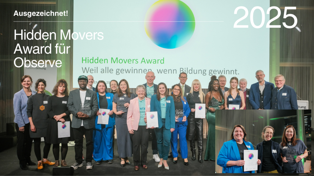 Wir freuen uns riesig – unser Projekt Observe – Jane’s Walks wurde von der Deloitte-Stiftung mit dem Hidden Movers Award 2025 in der Kategorie Wachstumsphase ausgezeichnet!